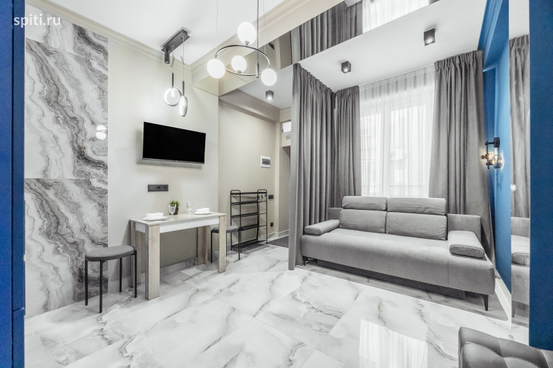 ???? Стильные апартаменты- студия в Сочи, в 20 минутах от моря и вблизи удобной транспортной развязки. В апартаментах кухня-гостиная с диваном и совмещенный санузел с душевой. Парковка около дома за шлагбаумом. ???? Апартаменты расположены у удалении от городского шума. Но в то же время в 5 минутах езды от городского пляжа, многочисленных кафе и ресторанов, магазинов. Неподалеку находится транспортная развязка, откуда можно уехать в любой конец города. ???? Апартаменты рассчитаны для проживания до 3 человек, здесь все предусмотрено для комфортного отдыха. В распоряжении гостей: ✅ Диван-кровать 1 шт. ✅ Постельное бельё ✅ Мягкие полотенца ✅ TV ✅ Wi-fi ✅ Сплит тепло/холод ✅ Вешалка для вещей ✅ Кухня со всей необходимой посудой, столовыми приборами и бытовой техникой: чайник, микроволновая печь, вытяжка, эл.плита, холодильник. ✅ В ванной комнате: жидкое мыло, гель для душа, шампунь, кондиционер, фен. ✅ Гладильная доска и утюг, сушилка для белья.
